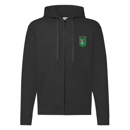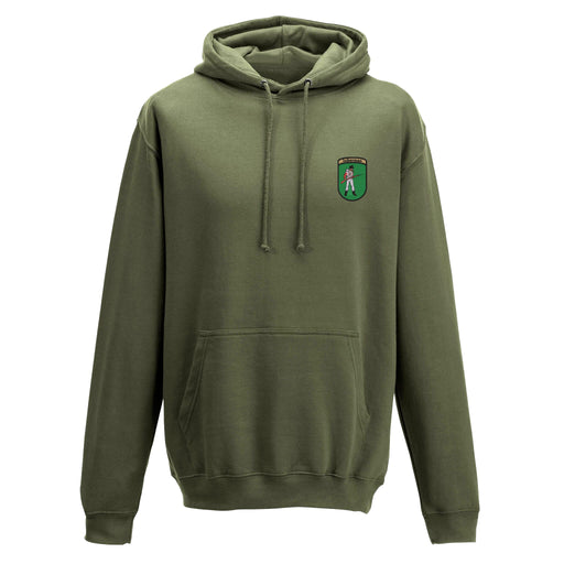 Twin needle stitching detailing. Double fabric hood with self coloured cords. Kangaroo pouch pocket. Ribbed cuffs and hem. Regiment logo embroidere...
