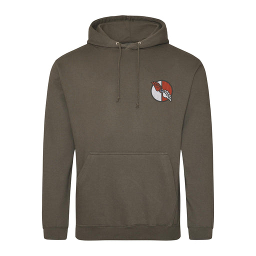 Twin needle stitching detailing. Double fabric hood with self coloured cords. Kangaroo pouch pocket. Ribbed cuffs and hem. Regiment logo embroidere...