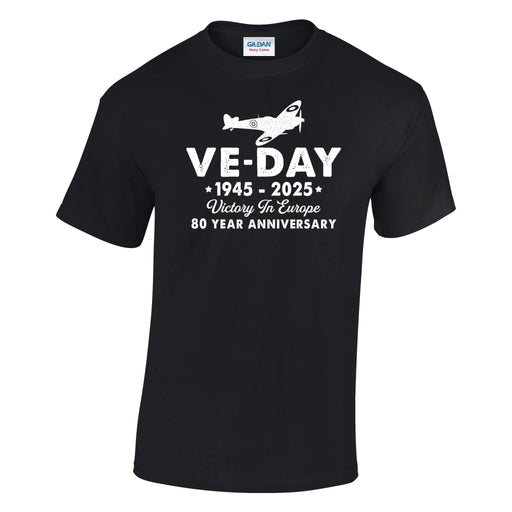 Victory in Europe Spitfire T-Shirt 1945 - 2025 - 80th Anniversary Seamless collar. Double needle topstitched neckline. Taped neck and shoulders. Do...