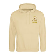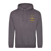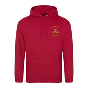 Twin needle stitching detailing. Double fabric hood with self coloured cords. Kangaroo pouch pocket. Ribbed cuffs and hem. Regiment logo embroidered on left breast.