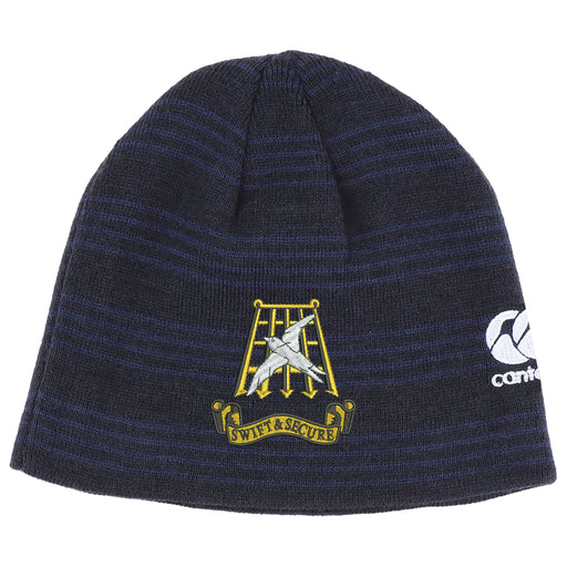Canterbury rugby beanie headwear with regiment embroidered logo centre and Canterbury logo embroidered on left side.Choice of 2 coloursOne Size fit...