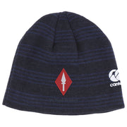Canterbury rugby beanie headwear with regiment embroidered logo centre and Canterbury logo embroidered on left side.