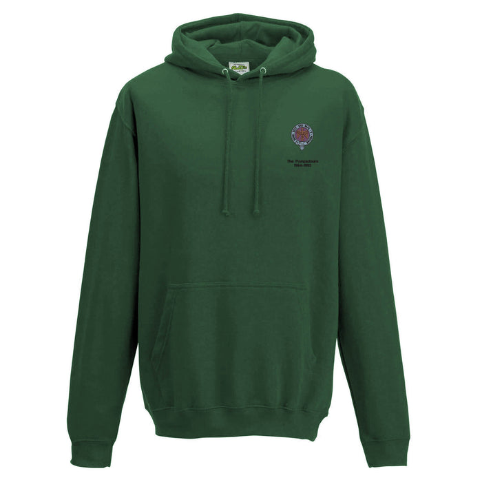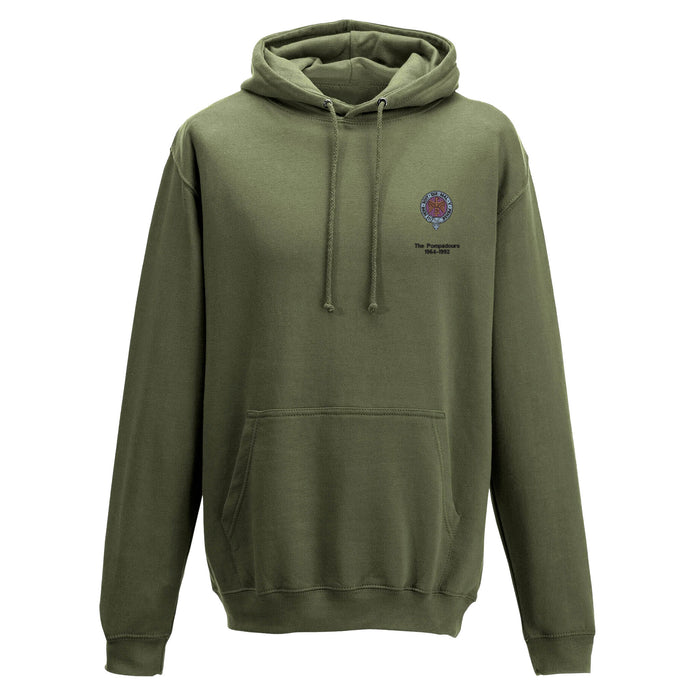 Twin needle stitching detailing. Double fabric hood with self coloured cords. Kangaroo pouch pocket. Ribbed cuffs and hem. Regiment logo embroidered on left breast.